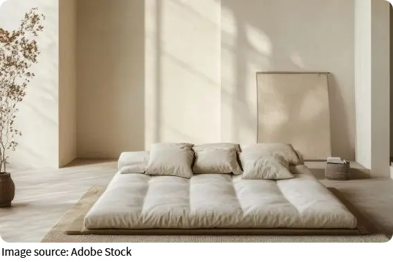 Bedrooms benefit from warmer shades in bedding, curtains, or rugs. Warm neutrals, peach, or soft amber create a cocooning effect, helping the mind transition from activity to rest.